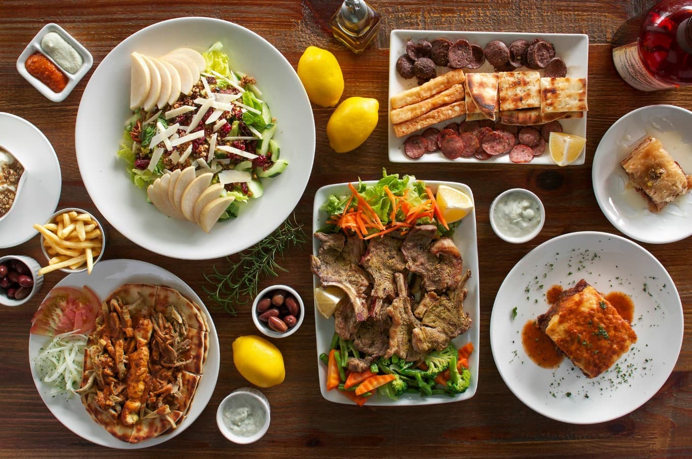 Perfectly grilled, perfectly seasoned, meaty and juicy chops laid on a bed of vegetables, served with a bowl of Greek salad